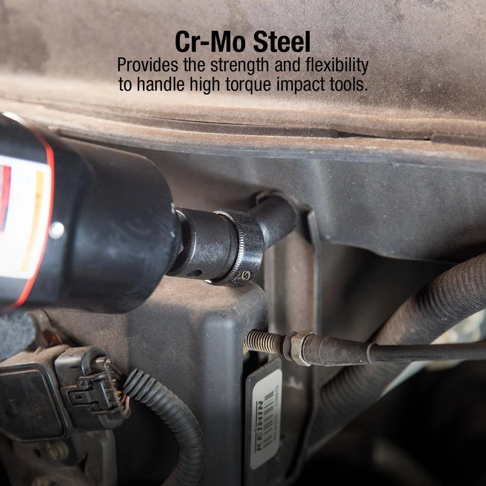 - Cr-Mo steel sockets provide the strength and flexibility to handle high torque impact tools