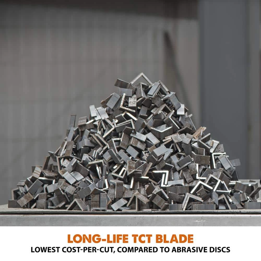 Evolution RAGE4, 7-1/4 in., TCT, Multi-Material Chop Saw is capable of cutting steel, aluminum, wood with nails in and plastic. This award winning machine is the perfect tool for slicing through rebar, bolt trimming and other small awkward applications. Plus it has the ability to cut through 2 by 4 planed lumber and reclaimed lumber with nails and screws. This saw is an essential tool to any tradesman.