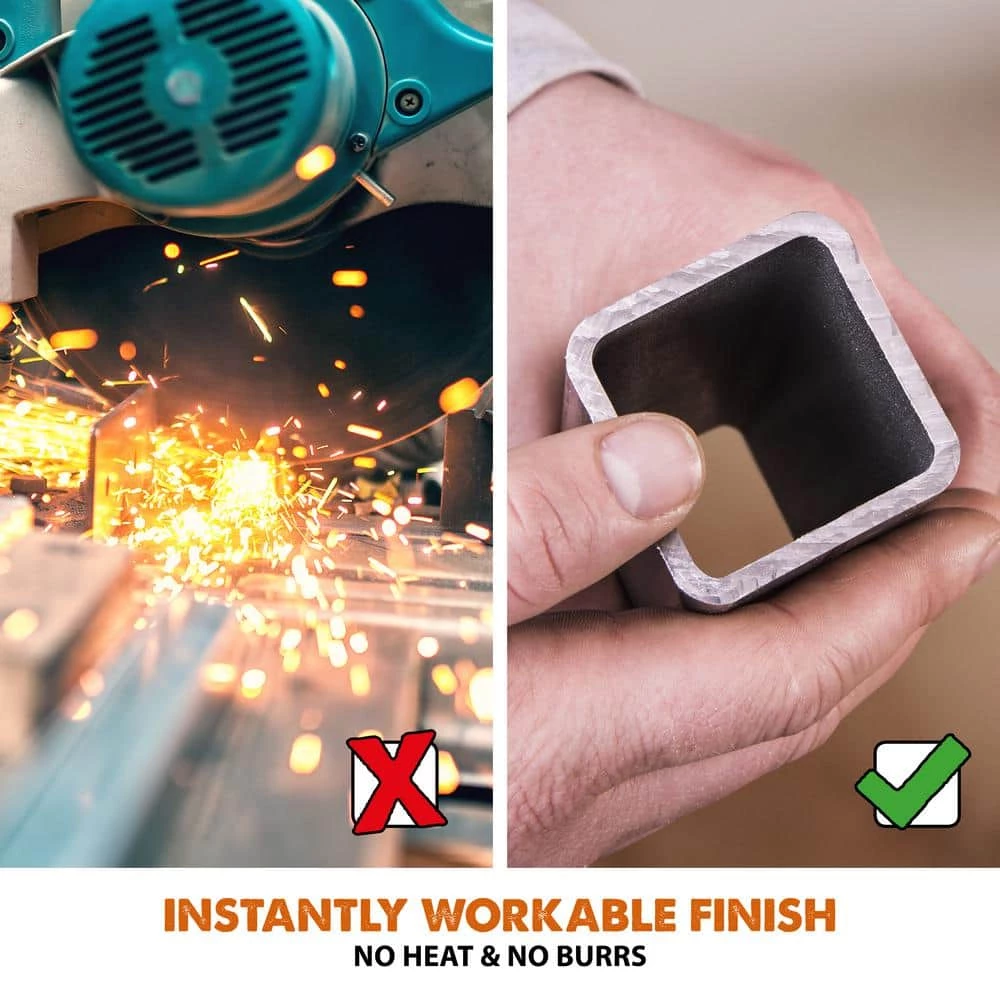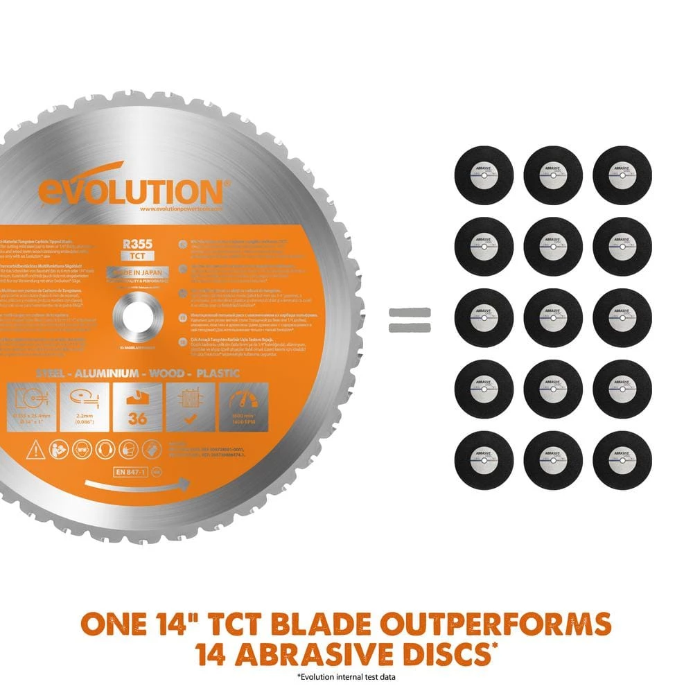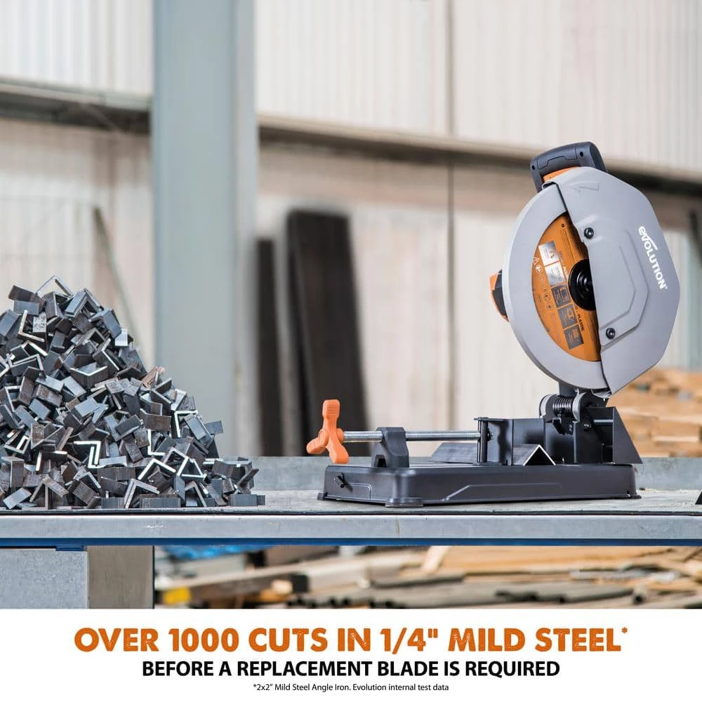 The R355CPS TCT Multi-Material Cutting Chop Saw was designed to be Accurate, Reliable and Powerful. The product is backed by a 3-year warranty to ensure peace of mind for the user. The powerful 15 Amp motor has been tested to 160-hours without any failure. A Japanese 32 tooth TCT blade is included with the ability to cut steel and various metals with no heat generated and virtually no sparks. The lower RPMs along with the uniquely configured blade promotes accurate cutting with safety in mind.
