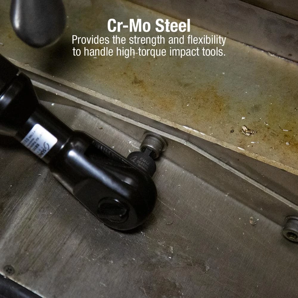- Cr-Mo steel sockets provide the strength and flexibility to handle high torque impact tools