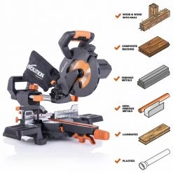 10 Amp 7-1/4 in. Sliding Compound Miter Saw with, Laser Guide, Dust Bag, 10 ft. Power Cord and Multi-Material 20-T Blade by Evolution Power Tools